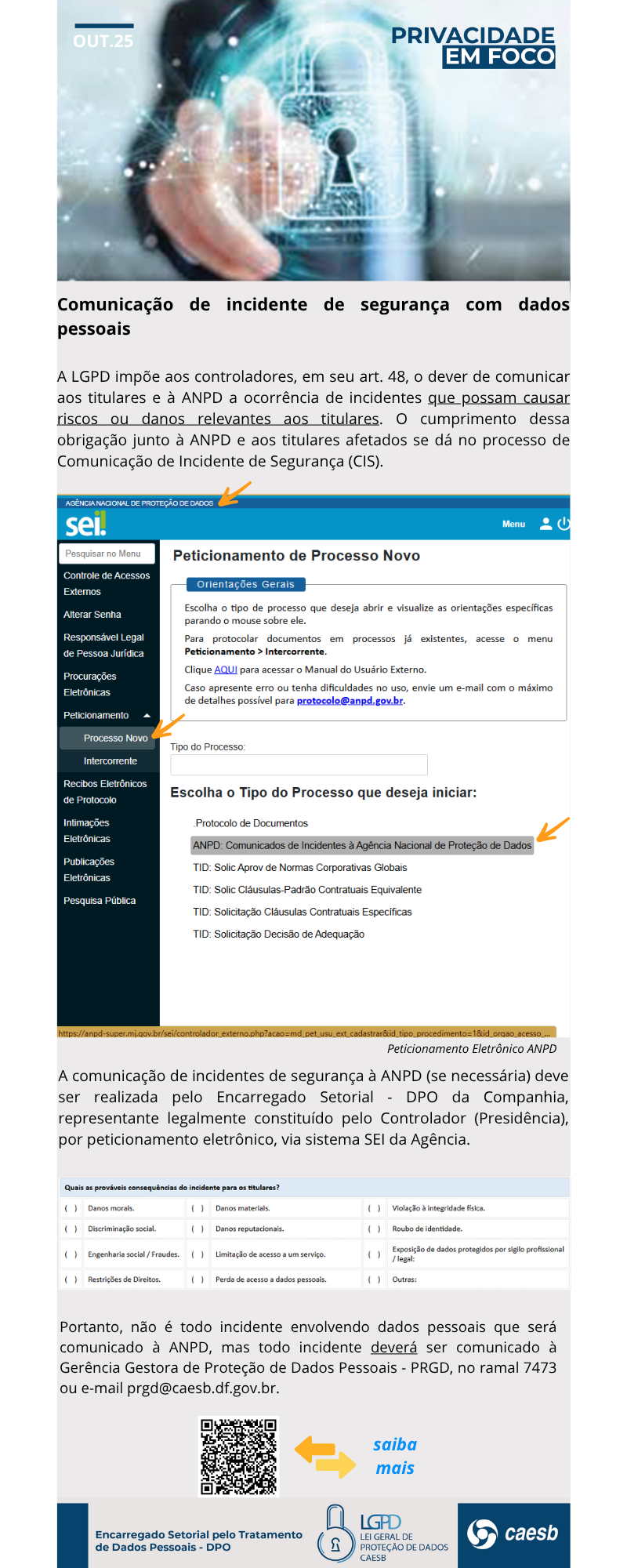 - Outubro – Comunicação de incidente de segurança com dados pessoais