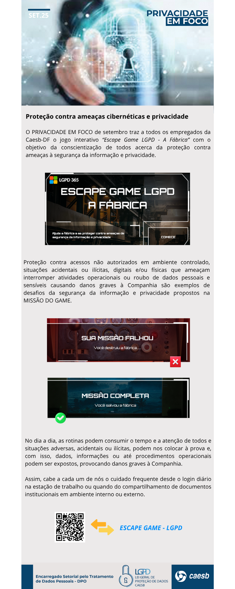 - Setembro – Escape Game LGPD
